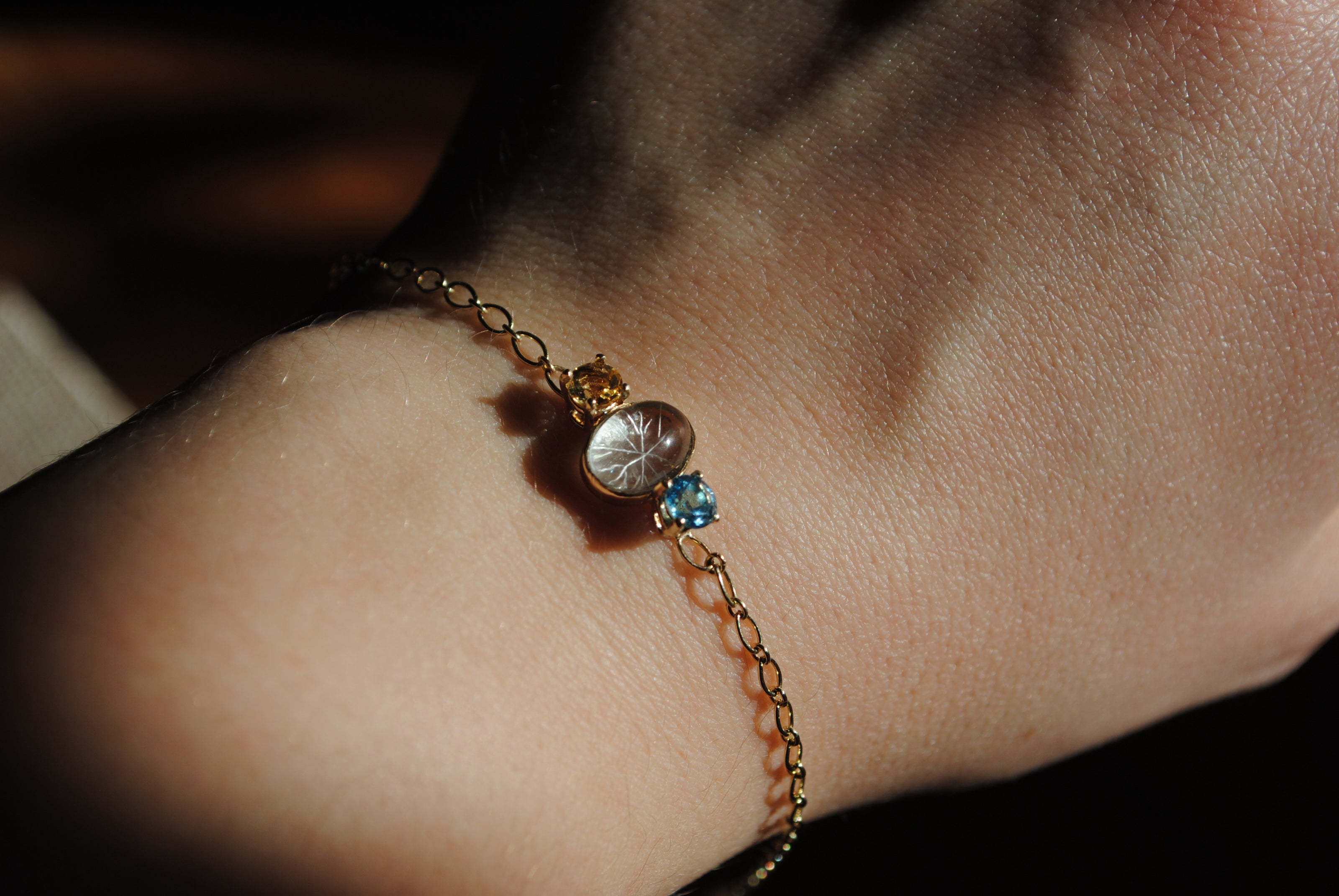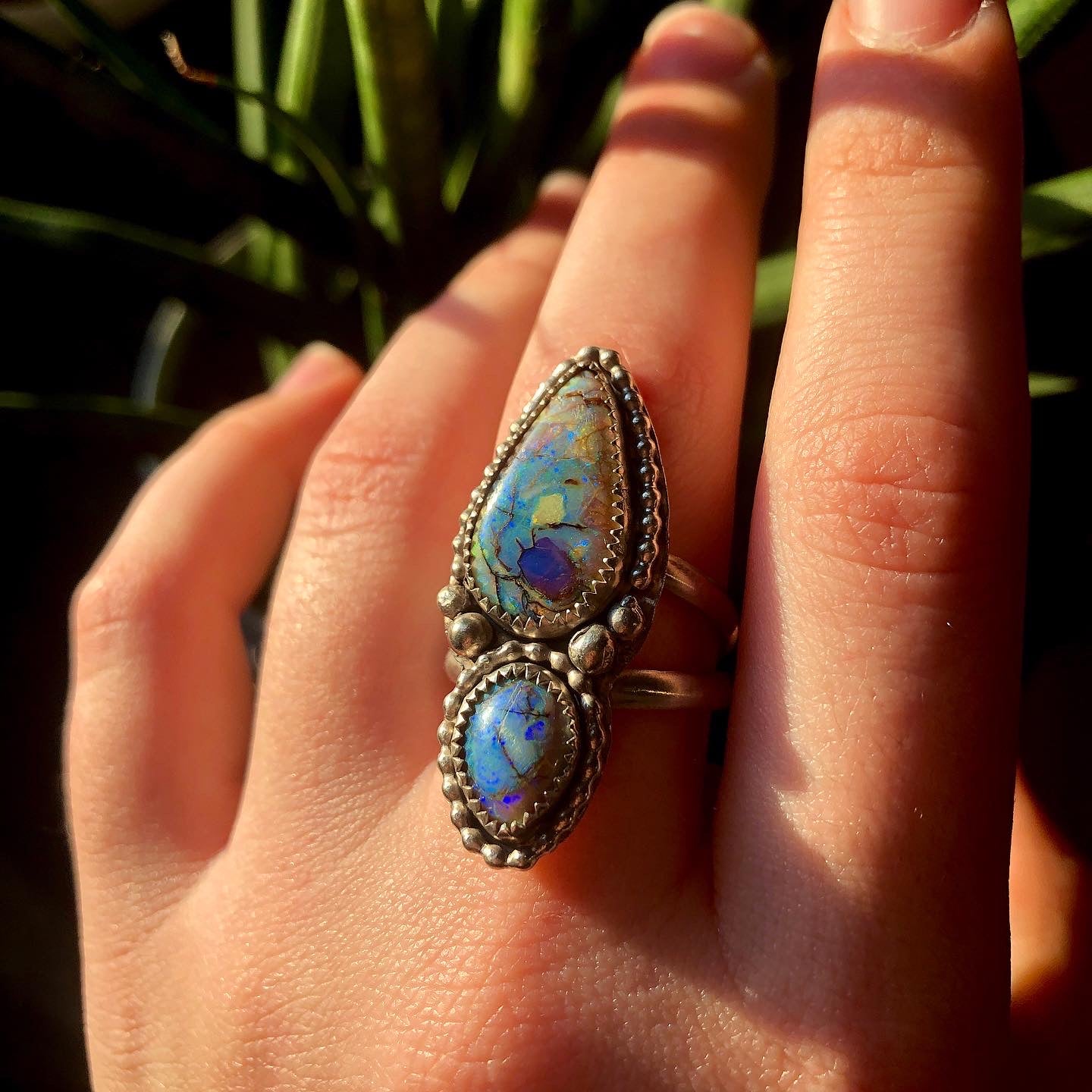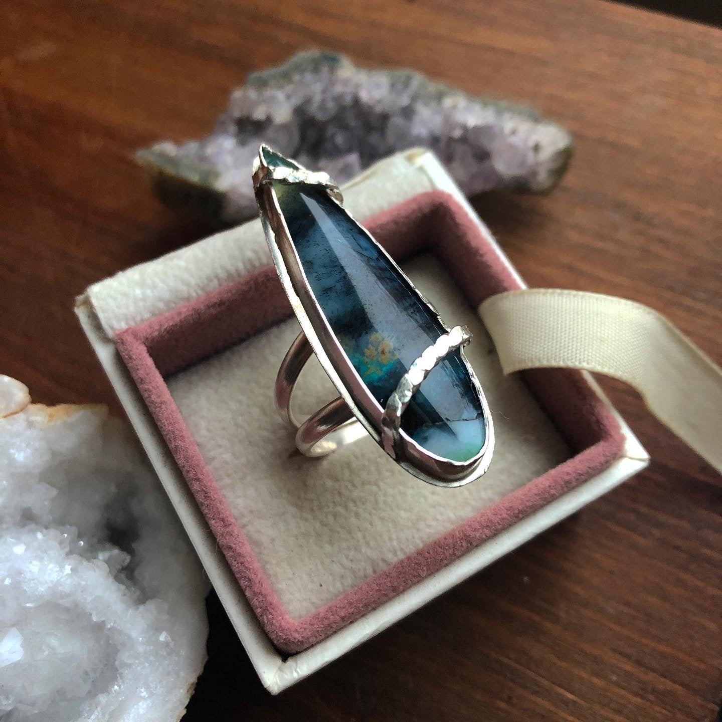 Sterling silver, 10k gold, tourmaline, and sapphire