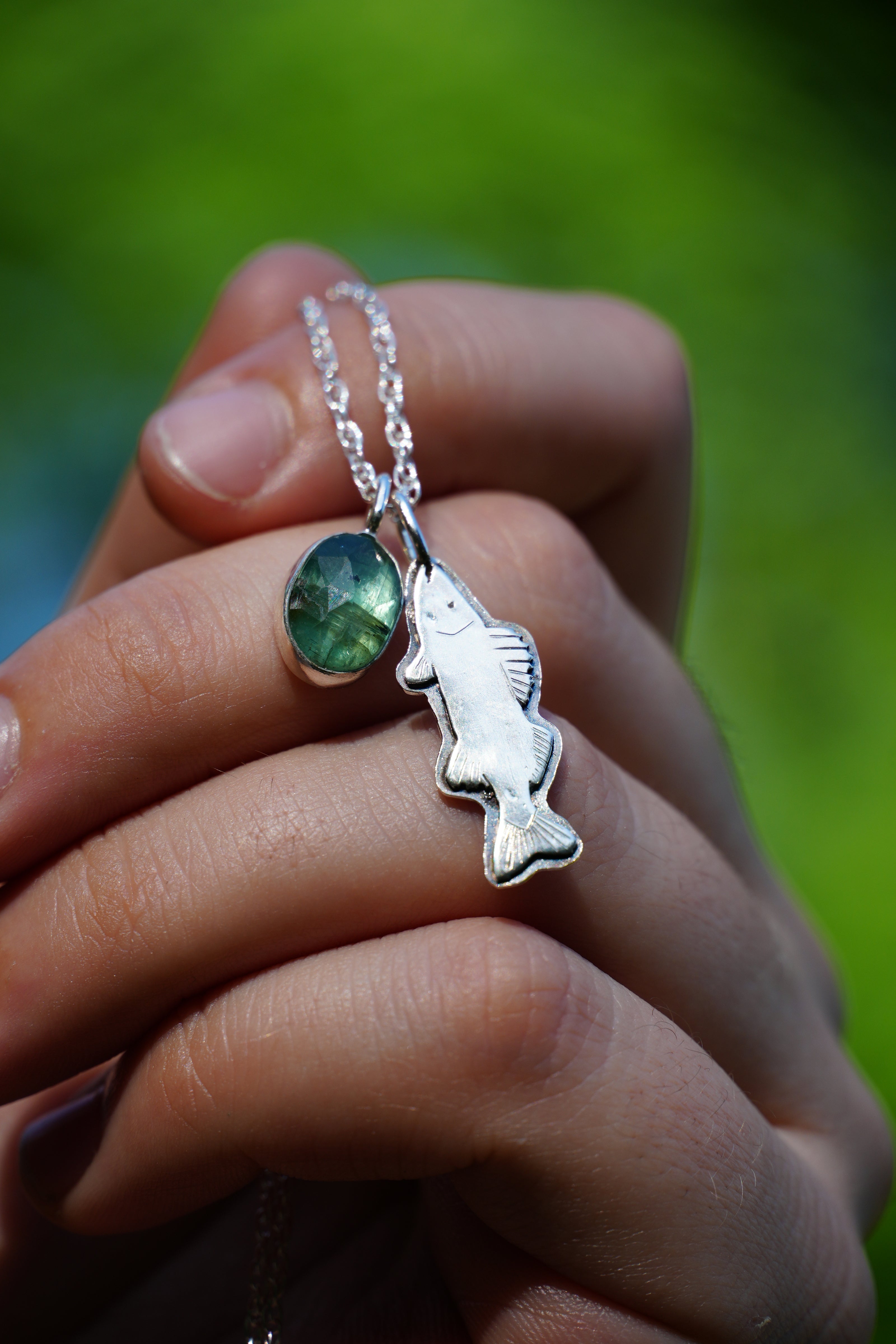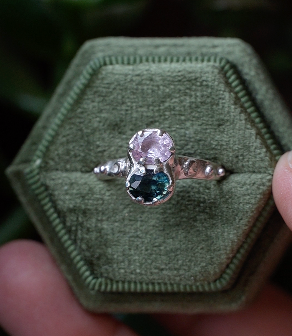Sterling silver, 10k gold, tourmaline, and sapphire | 2024