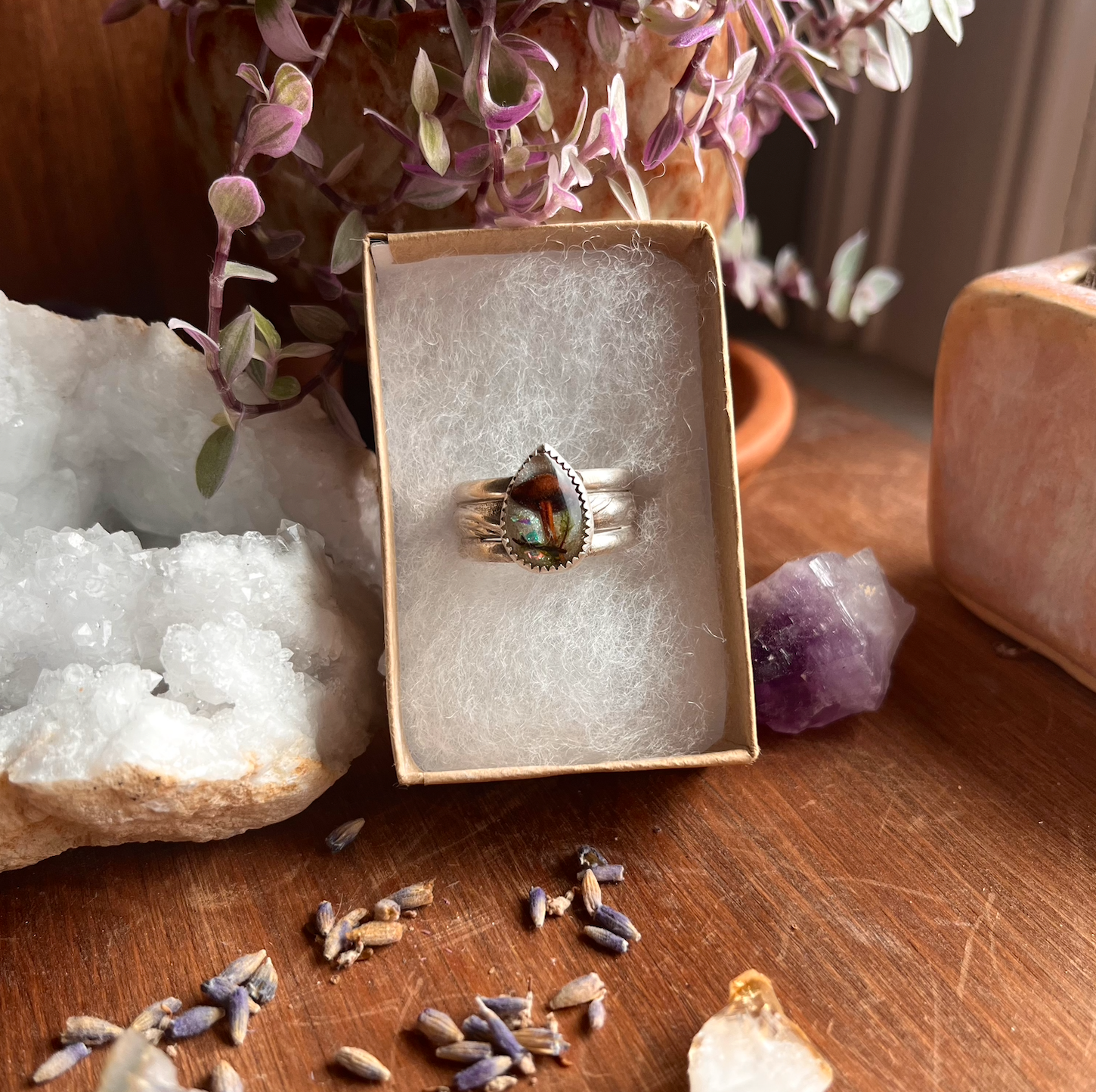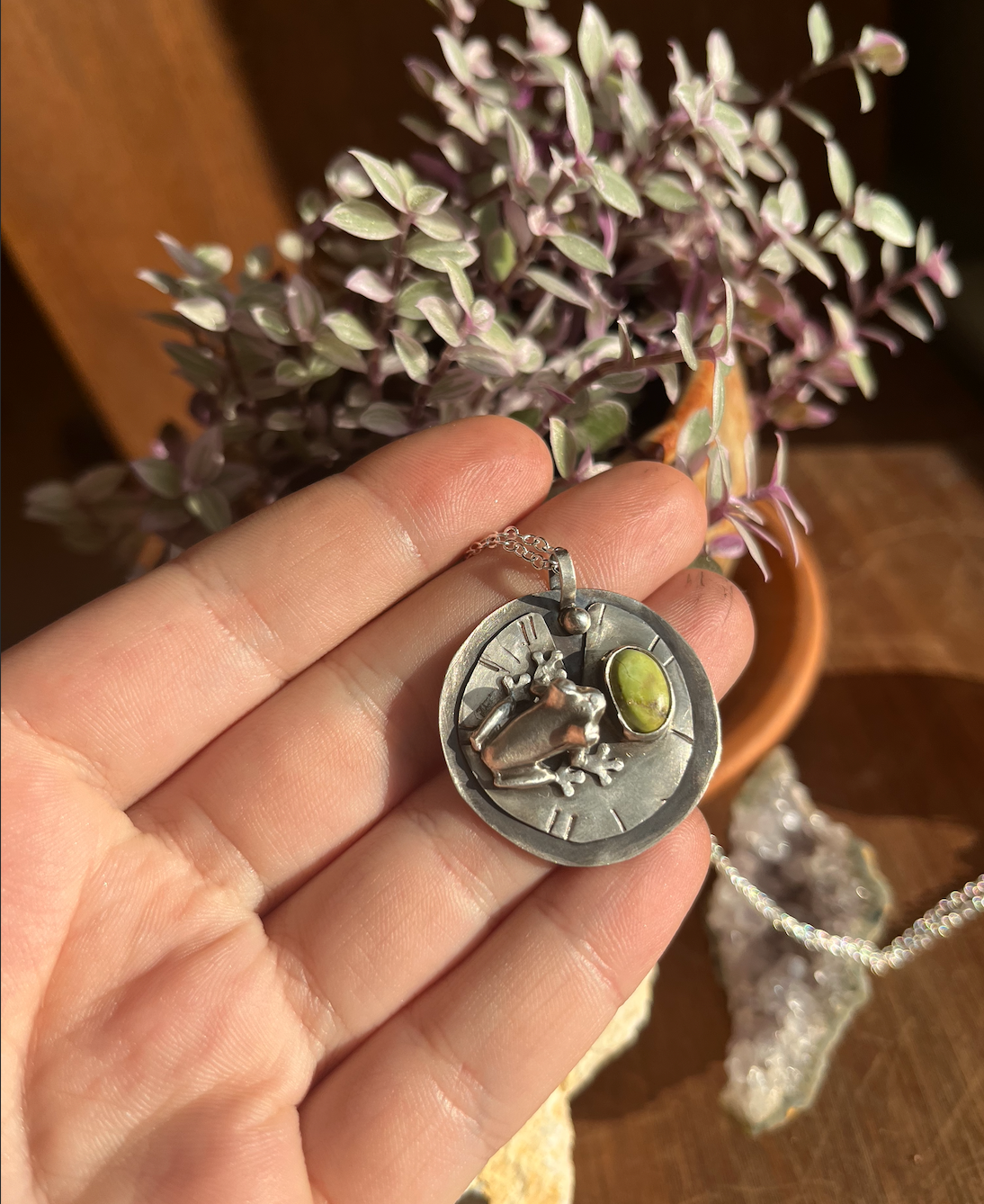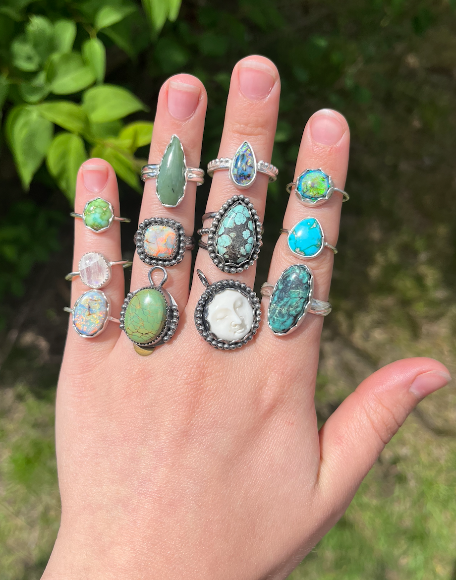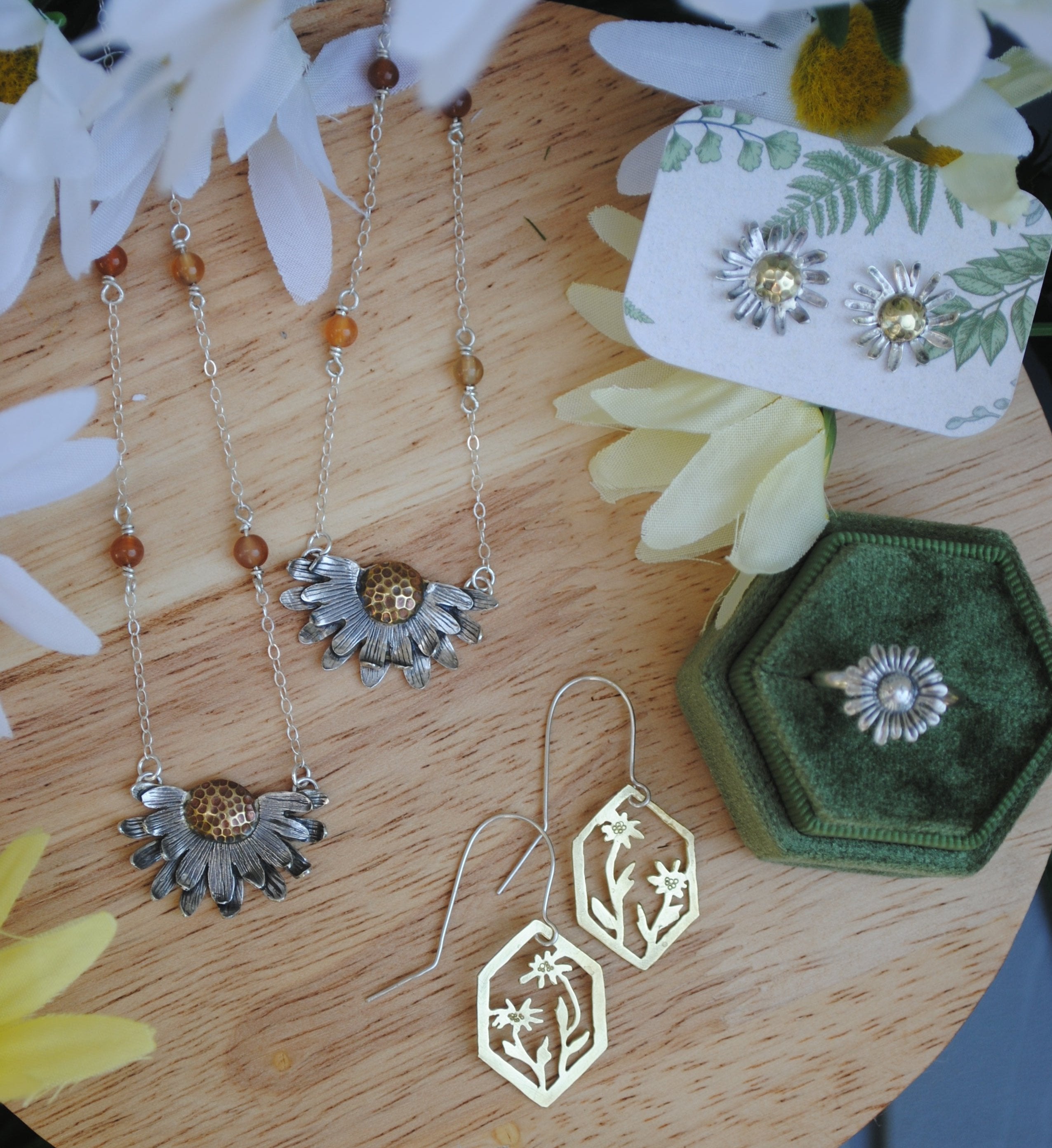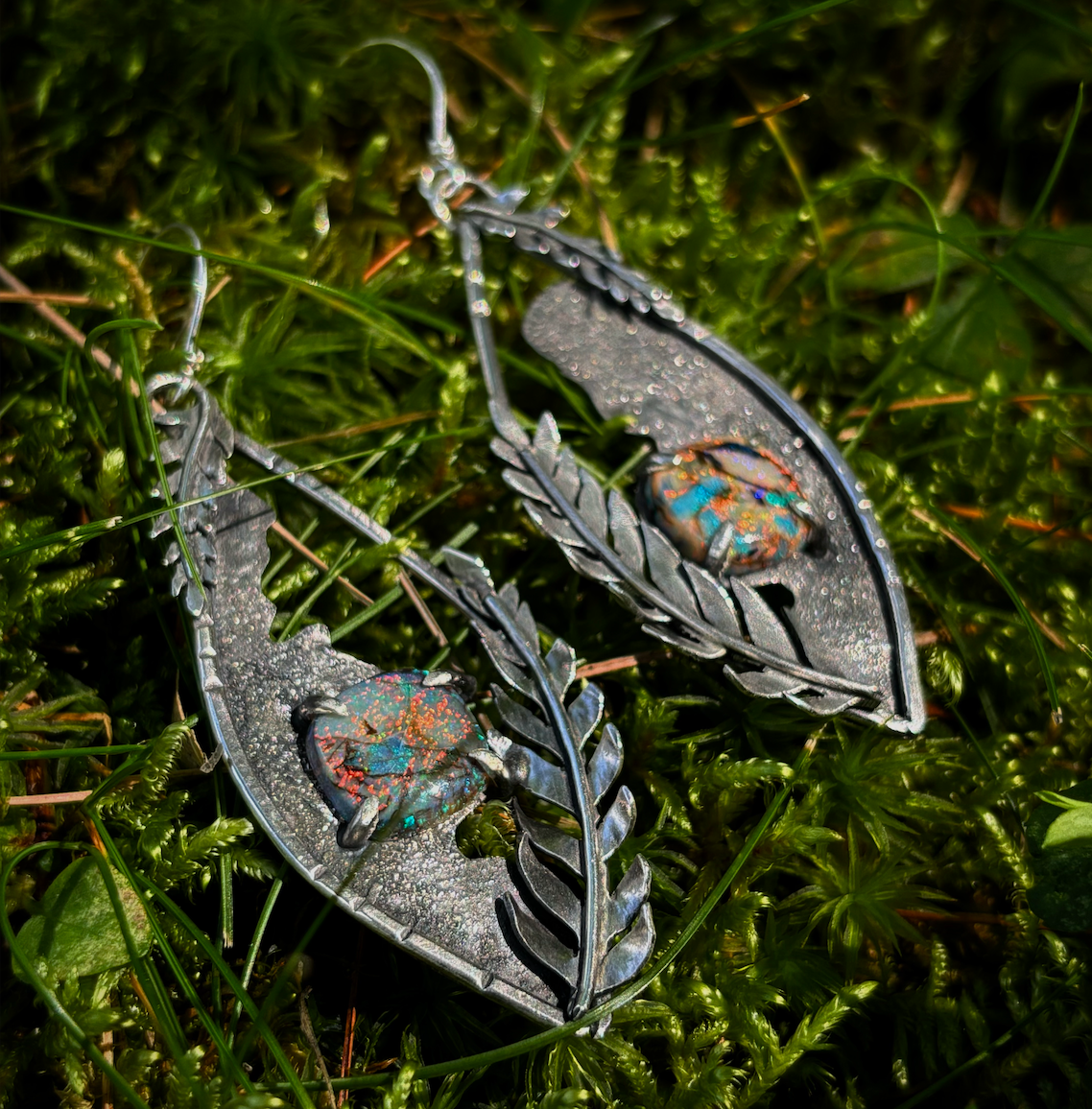 From the Woodland Mushroom Collection featuring hammered brass, real ferns, and turquoise stones