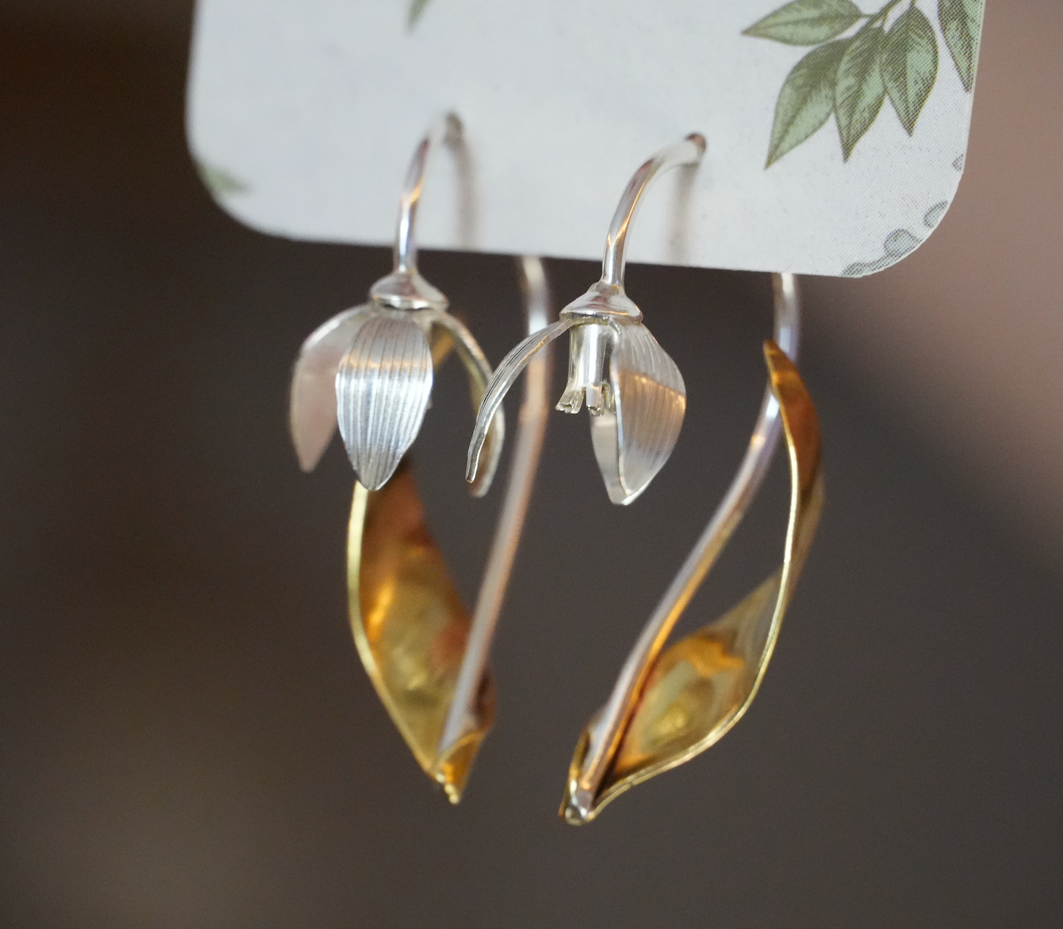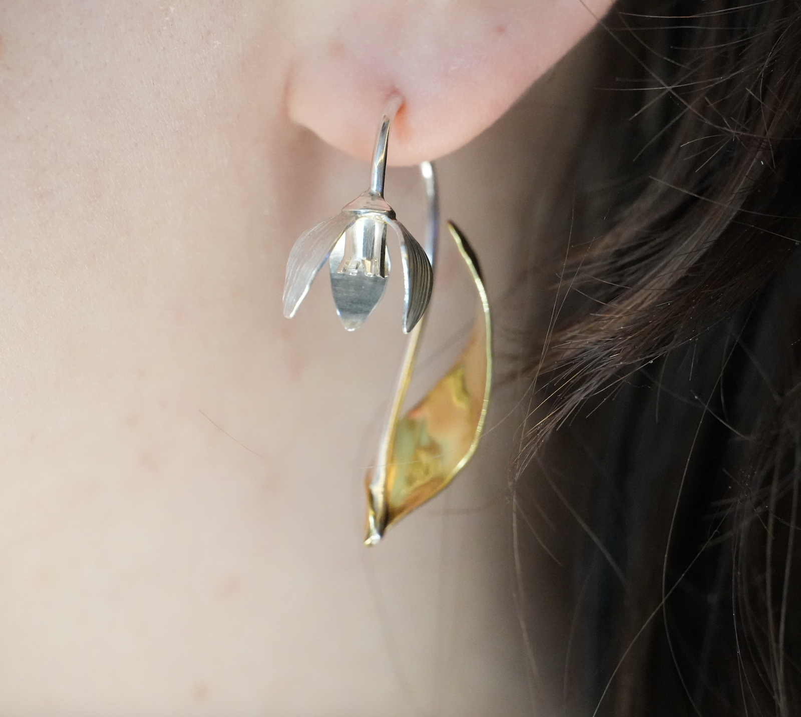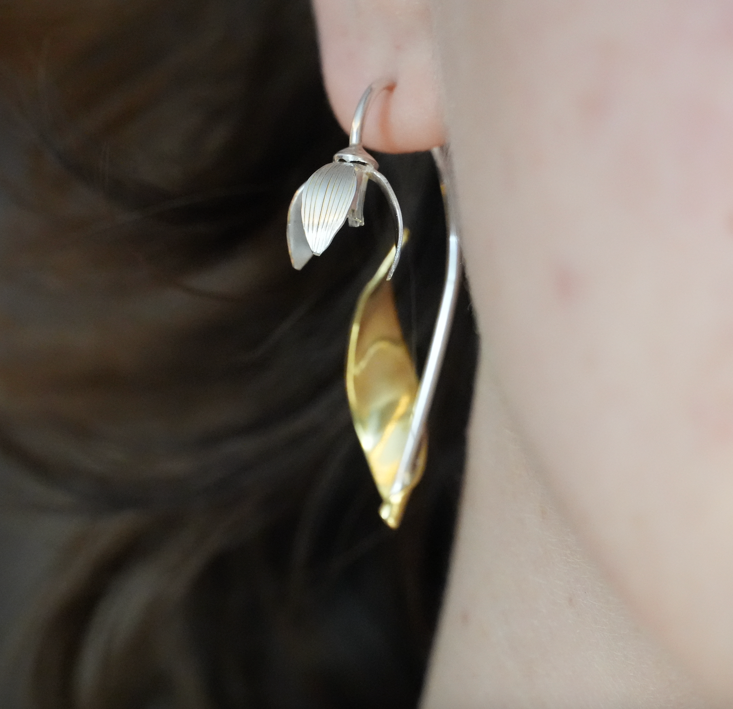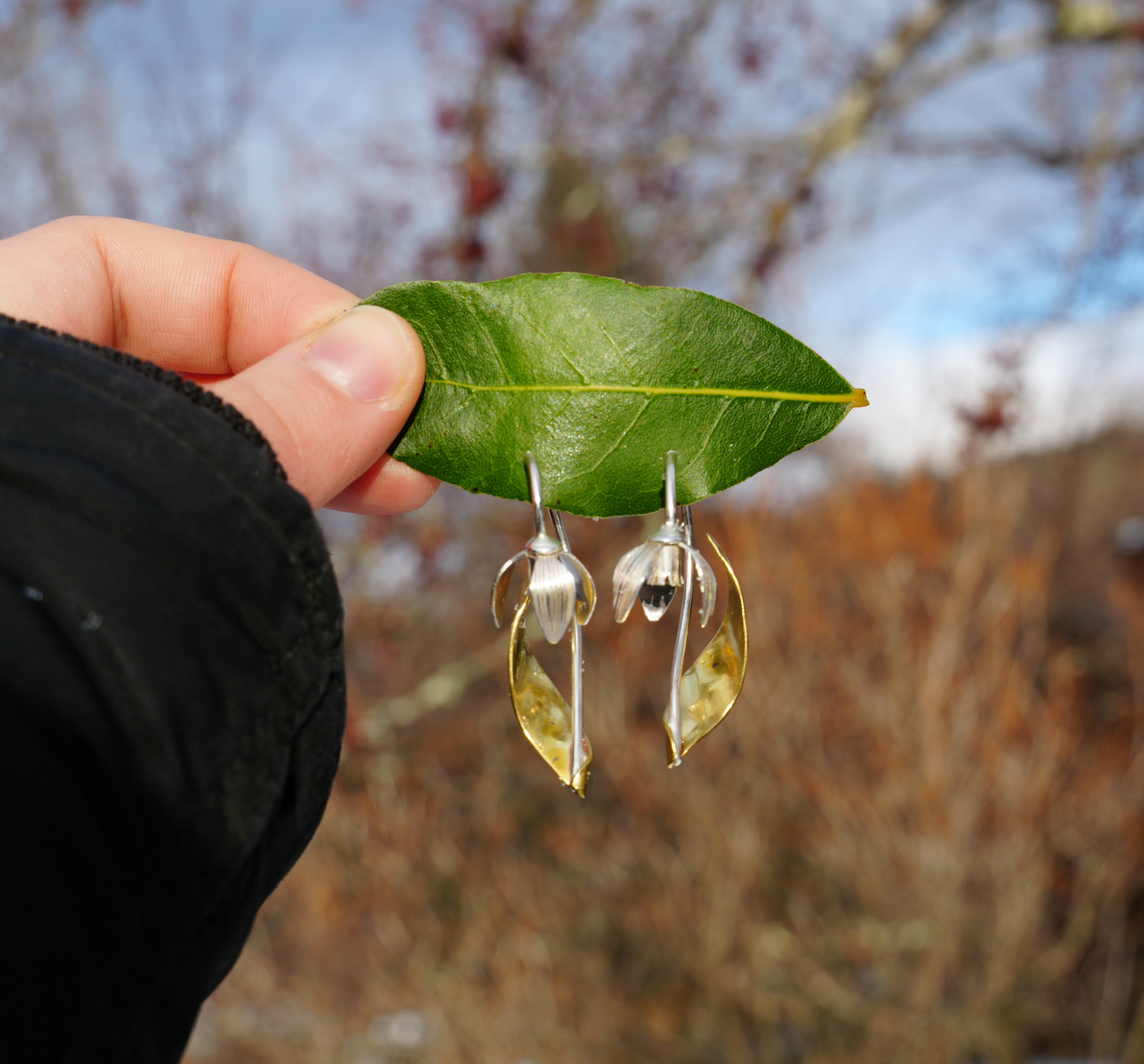 The hand-made replicas bloom through your ear but are as easy to wear as your favorite pair of studs! Carry a bit of winter magic with you in the gloomy months of winter by wearing your very own snowdrop earrings