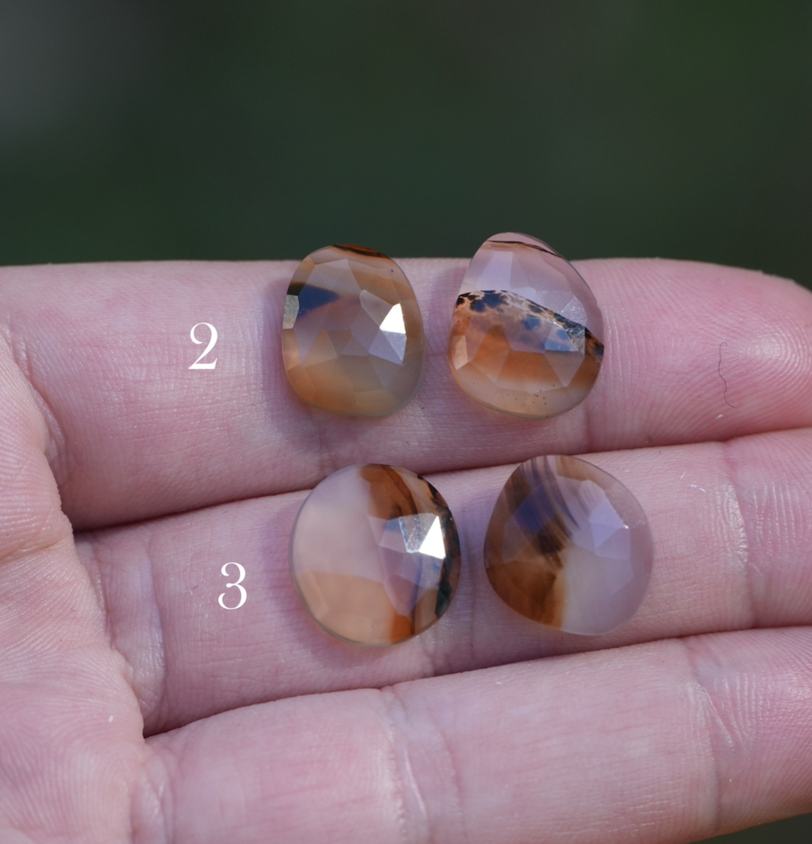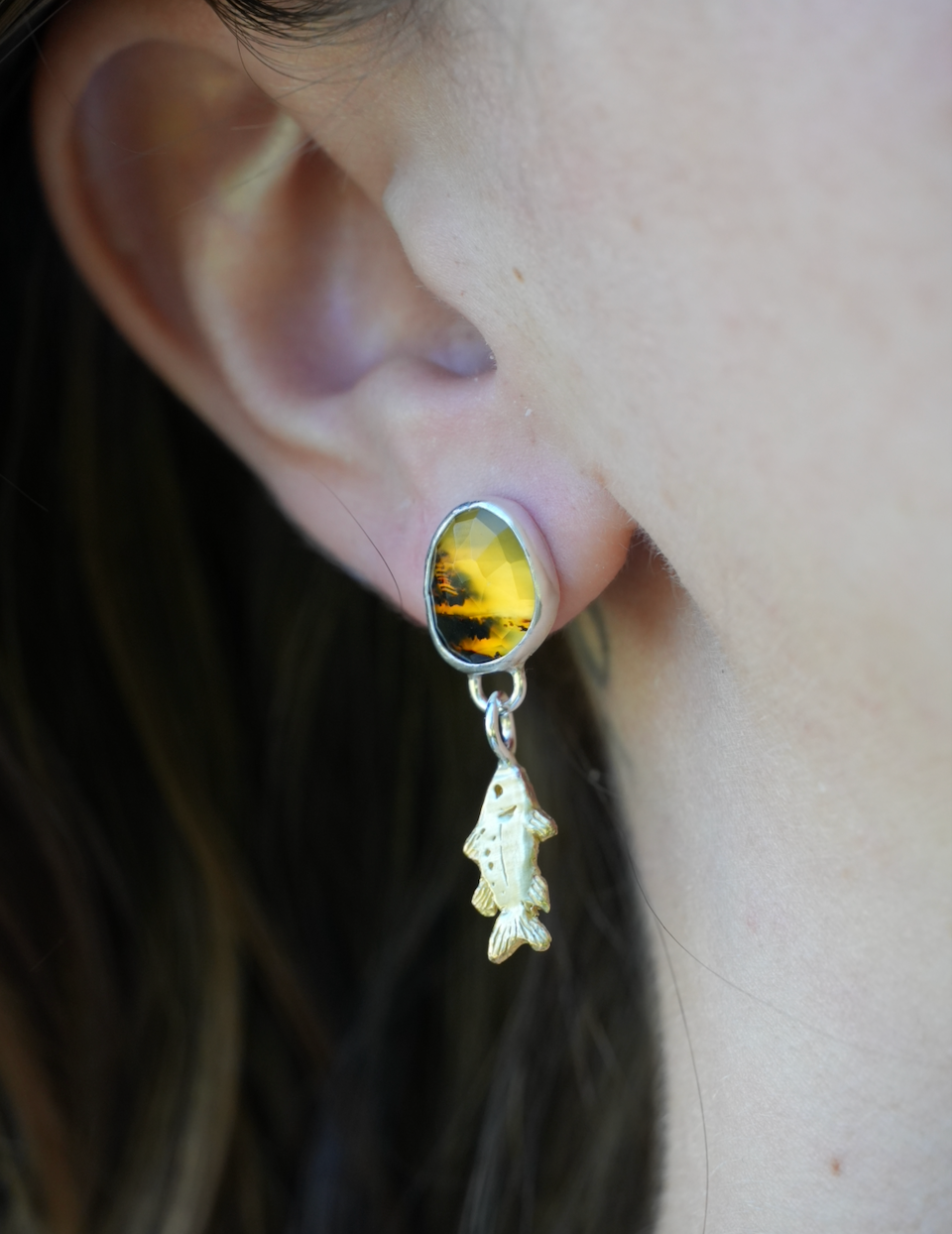 The perfect mixed metal studs to add some fun to our fish studs! Montana agates are set in sterling silver with wee bronze fish dangling beneath them!