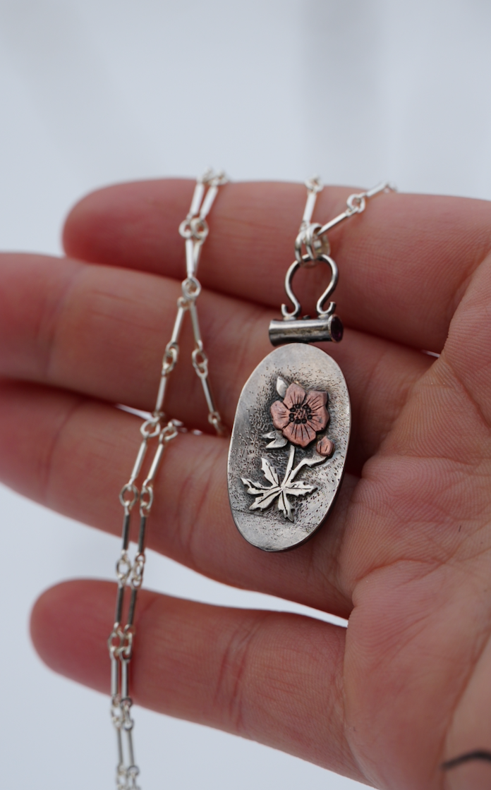 December's flower of the month, Hellebore, has a long and often dark history dating back to ancient Greek and Rome. This reversible pendant is inspired by their moody, beautiful blooms.