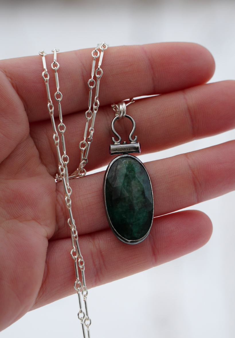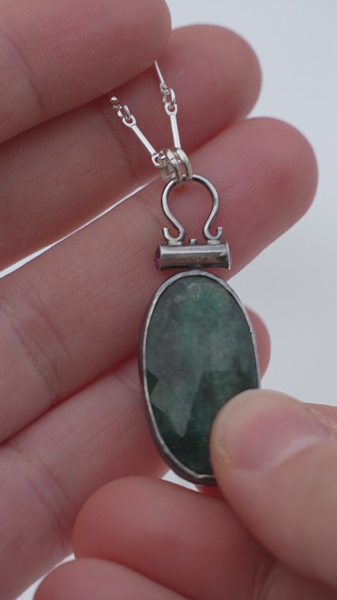 With a rose cut emerald on one side and hand carved hellebore on the other, you can pick your style based on the moment's mood